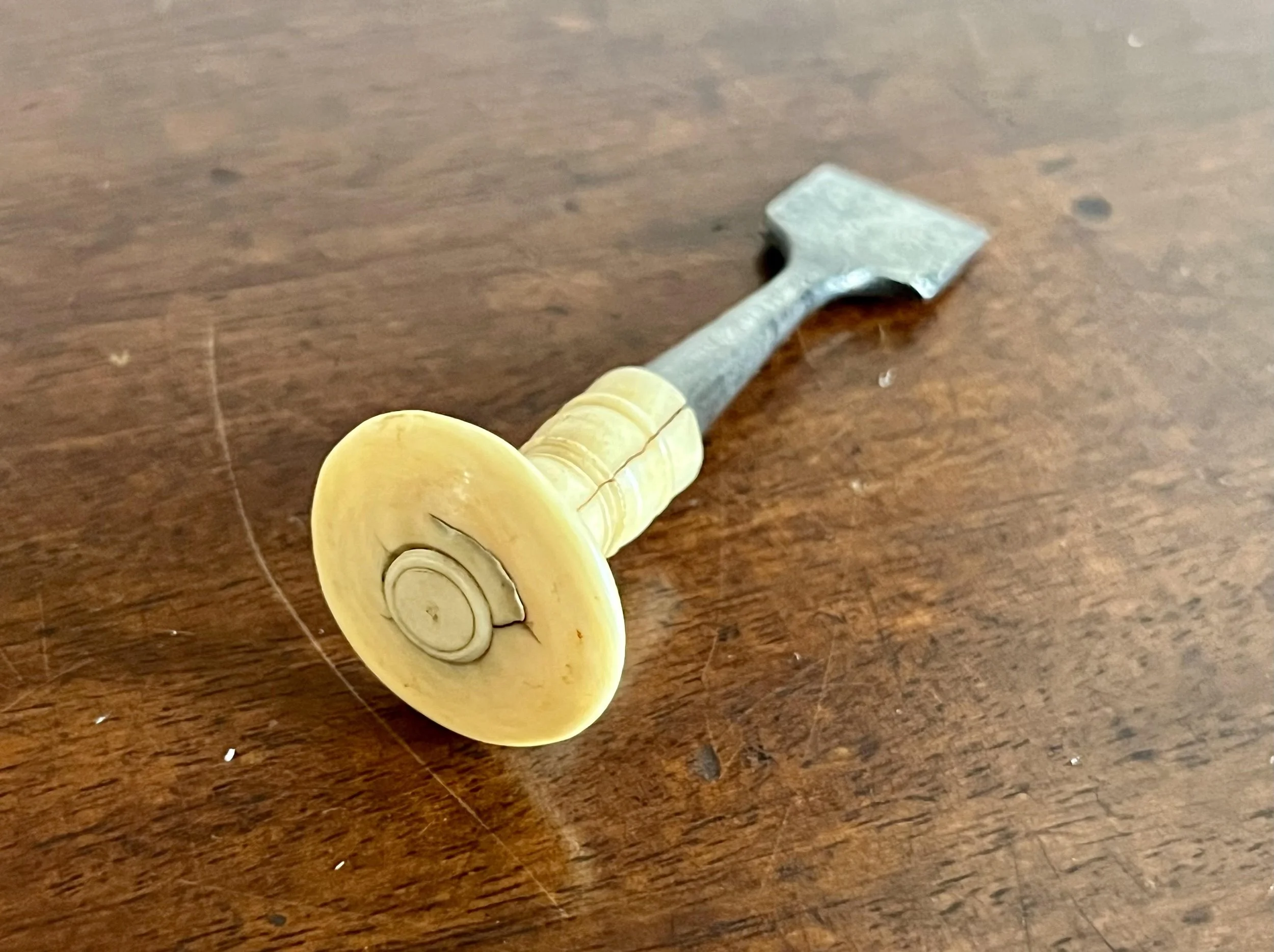 Steel chisel with ivory handle, owned by Thankful Denison Clift, donated by Thankful Cornwall.